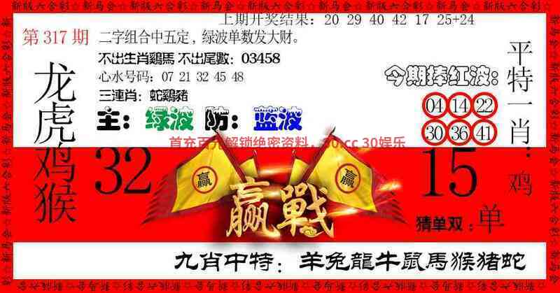 317期:九肖【狗兔羊马虎蛇猴鸡】开:鼠18中